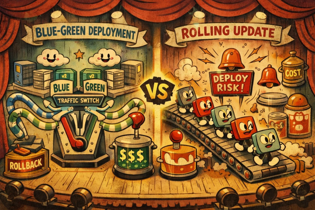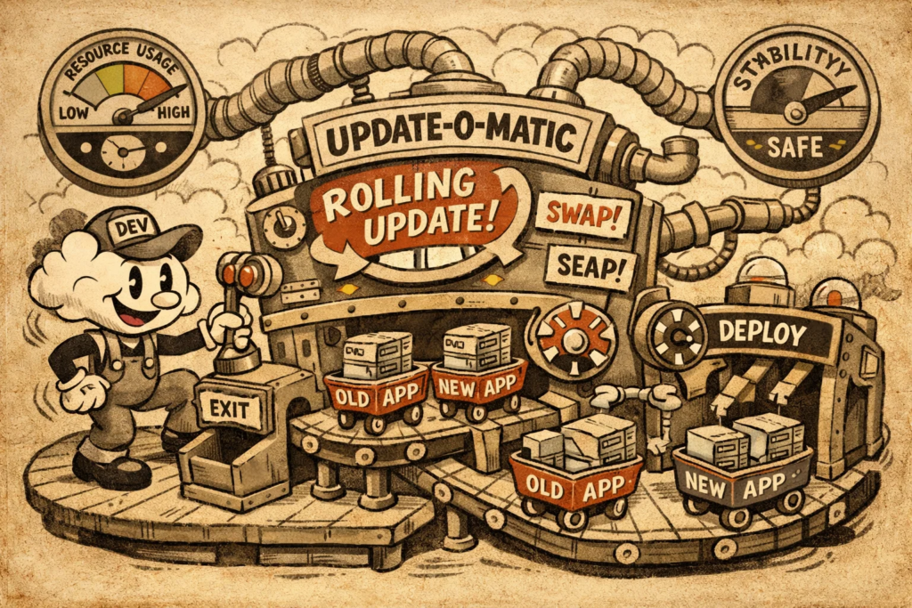 Rolling Update любят не только за то, что он обновляет сервис без резкого переключения. Его ценят за более приземлённую вещь: он обычно лучше вписывается в повседневную эксплуатацию и не требует держать рядом полную вторую среду только ради релиза.