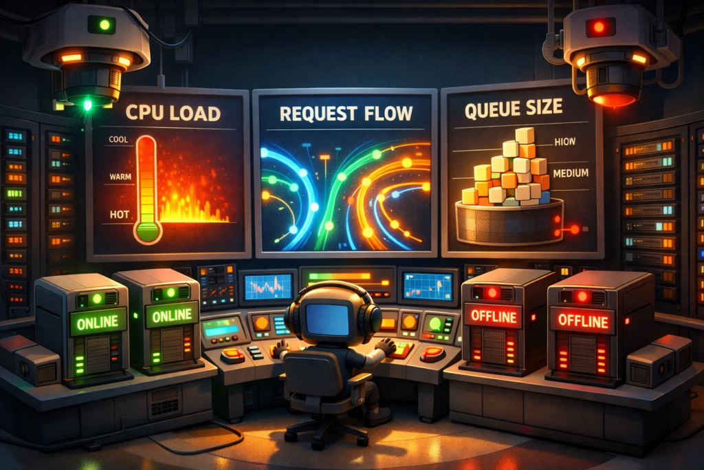 Первая точка здесь — метрики. Масштабирование должно опираться не на случайный показатель, а на сигнал, который действительно отражает состояние сервиса. Если CPU, длина очереди, число запросов или другой параметр выбраны неудачно, система начнёт реагировать либо слишком рано, либо слишком поздно.