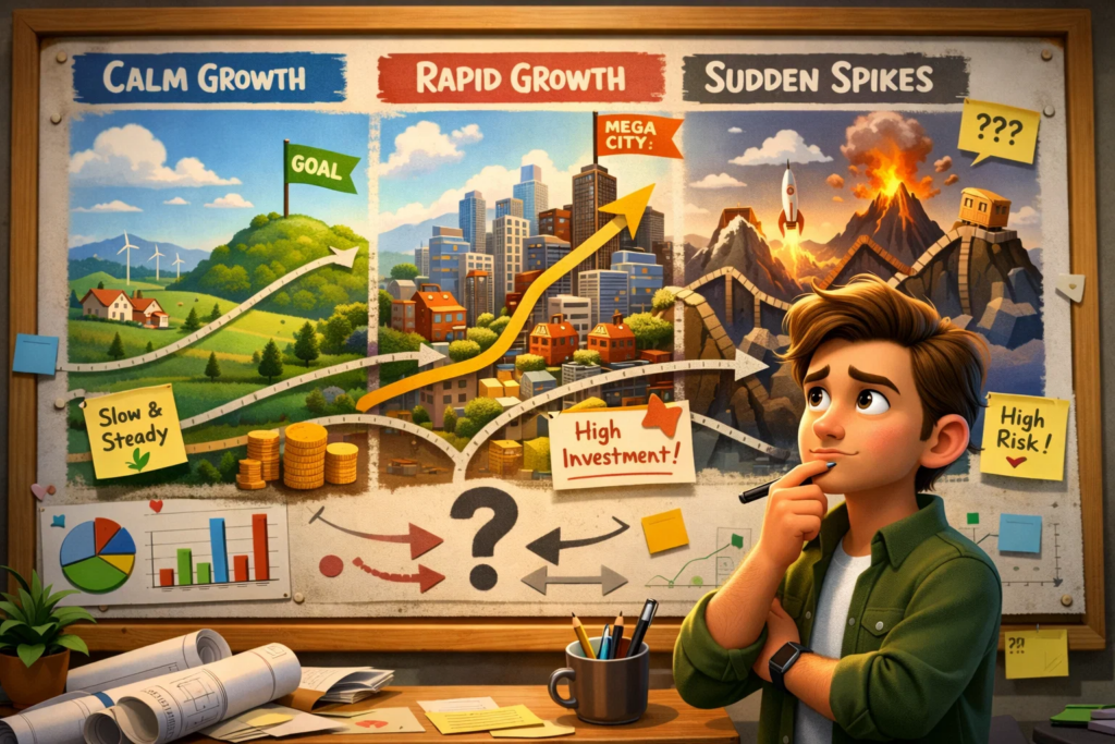 Как строить прогноз без магии: базовый сценарий, рост, пики и запас