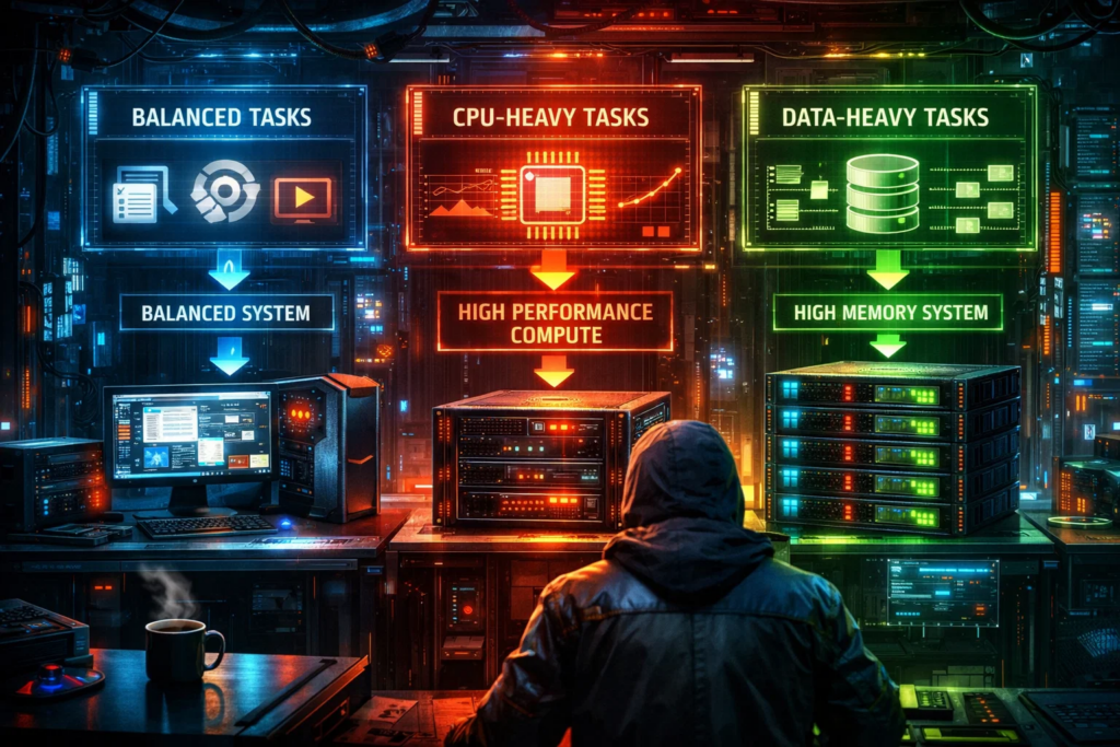 Сначала стоит понять, какой ресурс для вашей нагрузки действительно главный. Для одних приложений важнее ровный баланс между процессором и памятью. Для других всё упирается в вычисления. Для третьих — в объём RAM и работу с данными в памяти. Именно по этой логике провайдеры и разводят инстансы на general purpose, compute optimized и memory optimized семейства.