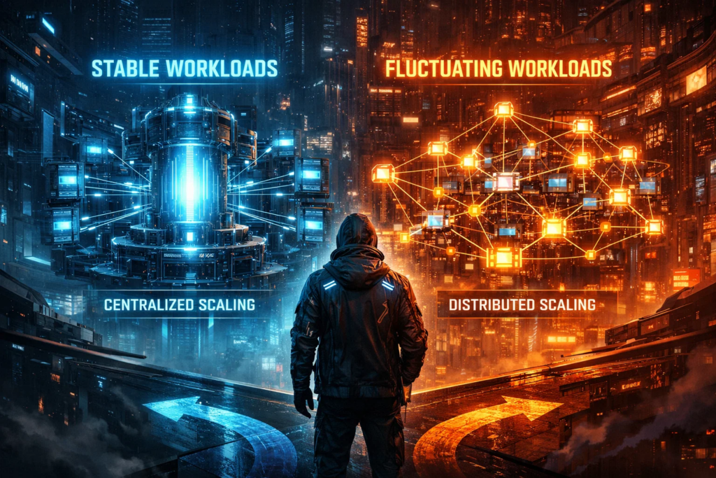 Это два разных ответа на два разных типа роста. Один помогает тогда, когда приложению нужен более сильный один сервер. Другой — когда системе выгоднее добавлять и убирать экземпляры по мере изменения нагрузки. Поэтому выбирать между ними стоит не по моде, а по тому, как устроено само приложение и как ведёт себя трафик.