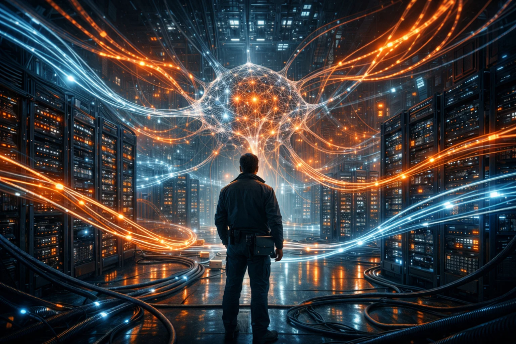На этом этапе легко решить, что главное уже понятно: выбрали сценарий, посмотрели на CPU, RAM, NVMe и GPU — значит, сервер подобран. Но в реальной работе AI-сервис почти никогда не живёт в вакууме. Модели постоянно нужно получать данные, обращаться к соседним сервисам, подтягивать контекст и сохранять результаты. Поэтому даже хороший сервер может вести себя медленно, если вся цепочка вокруг него собрана неудачно.