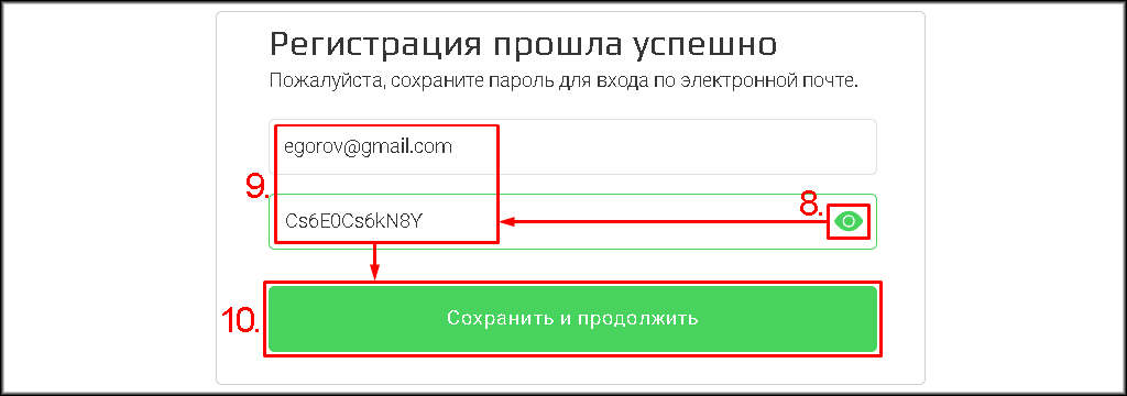- Сохраните значения полей “E-mail” и “Password” в безопасном месте. С их помощью вы можете получить доступ к вашему аккаунту Сервер Молл Cloud в случае утраты доступа к аккаунту Google.