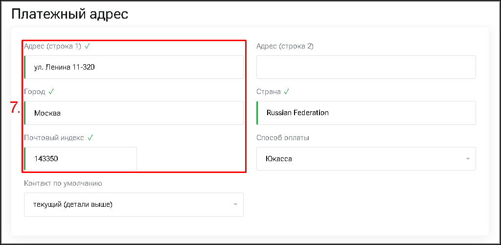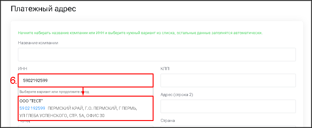 После выбора компании остальные поля заполнятся данными автоматически. - Если вы выбрали тип аккаунта “Физическое лицо”, укажите свой почтовый адрес, чтобы при необходимости мы могли отправлять вам бумажную корреспонденцию.