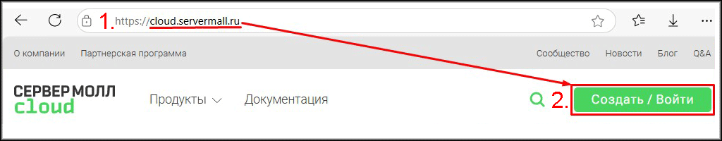 - Перейдите на сайт cloud.servermall.ru.