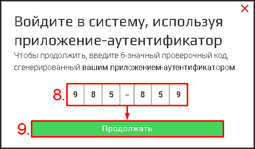 - В Google Authenticator: